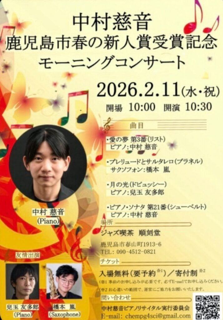 中村慈音(Pf) 鹿児島市春の新人賞受賞記念モーニングコンサート