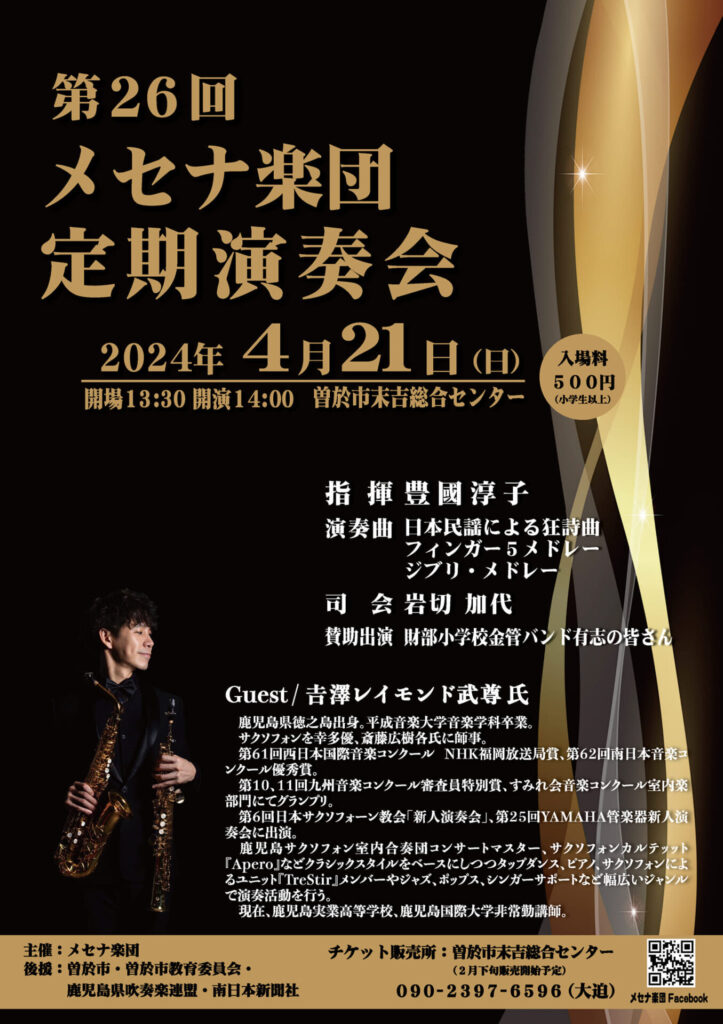 2024年4月21日(日)@14:00 – 16:00 – 第26回 メセナ楽団 定期演奏会 ■演奏曲 日本民謡による狂詩曲 フィンガー5 メドレー ジブリ・メドレーほか […]