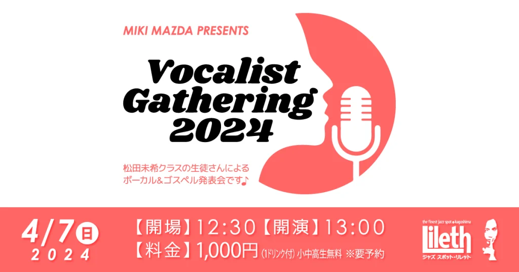 2024年4月7日(日)@13:00 – 17:00 – Vocalist Gathering 2024 松田未希クラスの生徒さんによるボーカル&ゴスペル発表会 ■出演 […]