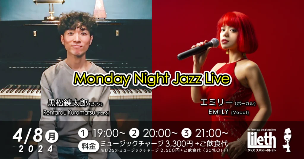 黒松錬太郎(Pf)×エミリー(Vo) Monday Night Jazz Live