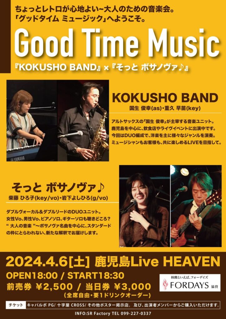 2024年4月6日(土)@18:30 – 21:00 – Good Time Music「KOKUSHO BAND」×「そっとボサノヴァ♪」 ちょっとレトロが心地よい~ […]