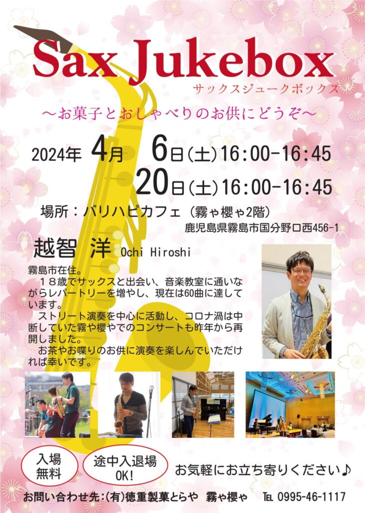 2024年4月6日(土)@16:00 – 16:45 – Sax Jukebox@霧や櫻や Sax Jukebox サックスジュークボックス お菓子とおしゃべりのお供に […]