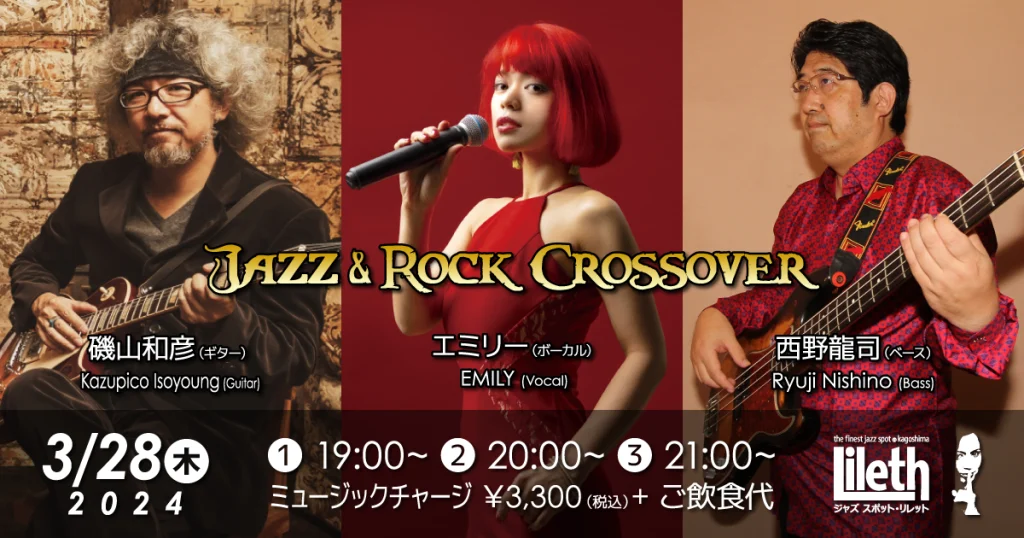 2024年3月28日(木)@19:00 – 23:30 – 西野龍司(Ba)×エミリー(Vo)×磯山和彦(Gt) Jazz & Rock Crossover ■出演者 ・ […]