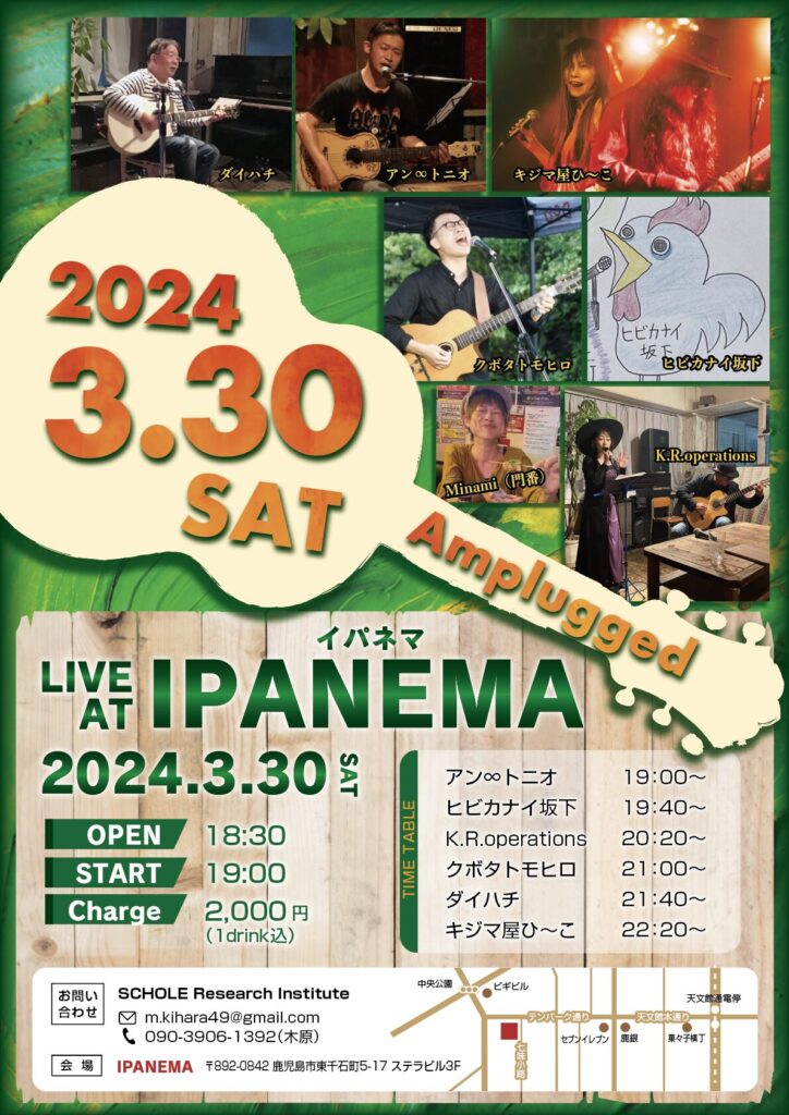 2024年3月30日(土)@19:00 – 23:30 – Amplugged@イパネマ ■タイムテーブル 19:00 アン∞トニオ 19:40 ヒビカナイ坂下 20:2 […]