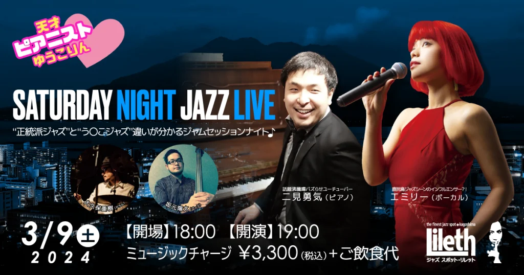 2024年3月9日(土)@19:00 – 22:00 – 天才ピアニストゆうこりん(Pf)×エミリー(Vo) SATURDAY NIGHT LIVE “正統派ジャズ”と […]
