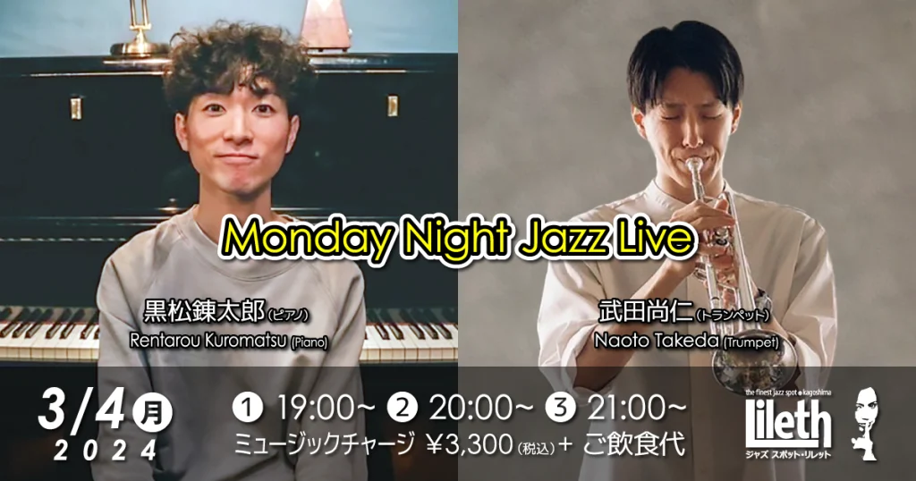 2024年3月4日(月)@19:00 – 21:30 – 黒松錬太郎(Pf)×武田尚人(Tp) Monday Night Jazz Live ■出演者 ・黒松錬太郎(P […]