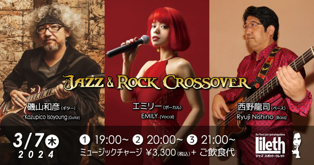 2024年3月7日(木)@19:00 – 23:30 – 西野龍司(Ba)×エミリー(Vo)×磯山和彦(Gt) Jazz & Rock Crossover ■出演者 ・ […]