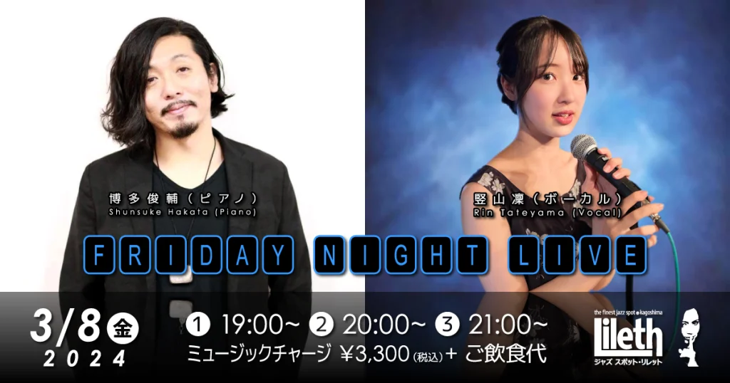 2024年3月8日(金)@19:00 – 21:30 – 博多俊輔(Pf)×竪山凜(Vo) Friday Night Live ■出演者 ・博多俊輔(Pf) ・竪山凜( […]