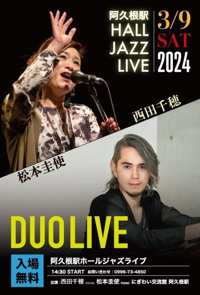 2024年3月9日(土)@14:30 – 16:30 – 阿久根駅 HALL JAZZ LIVE 西田千穂(Vo) × 松本圭使(Pf) DUO ■出演者 ・西田千穂( […]