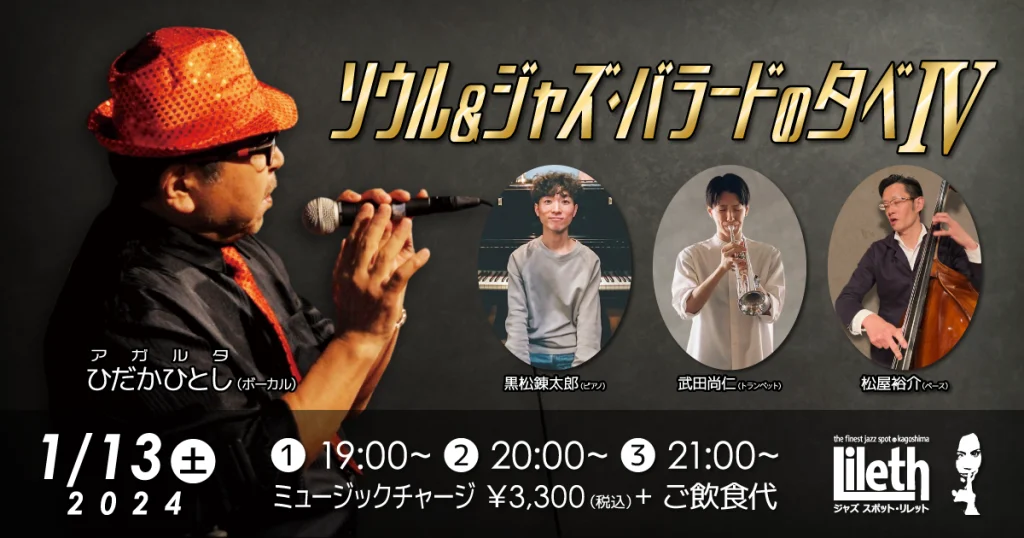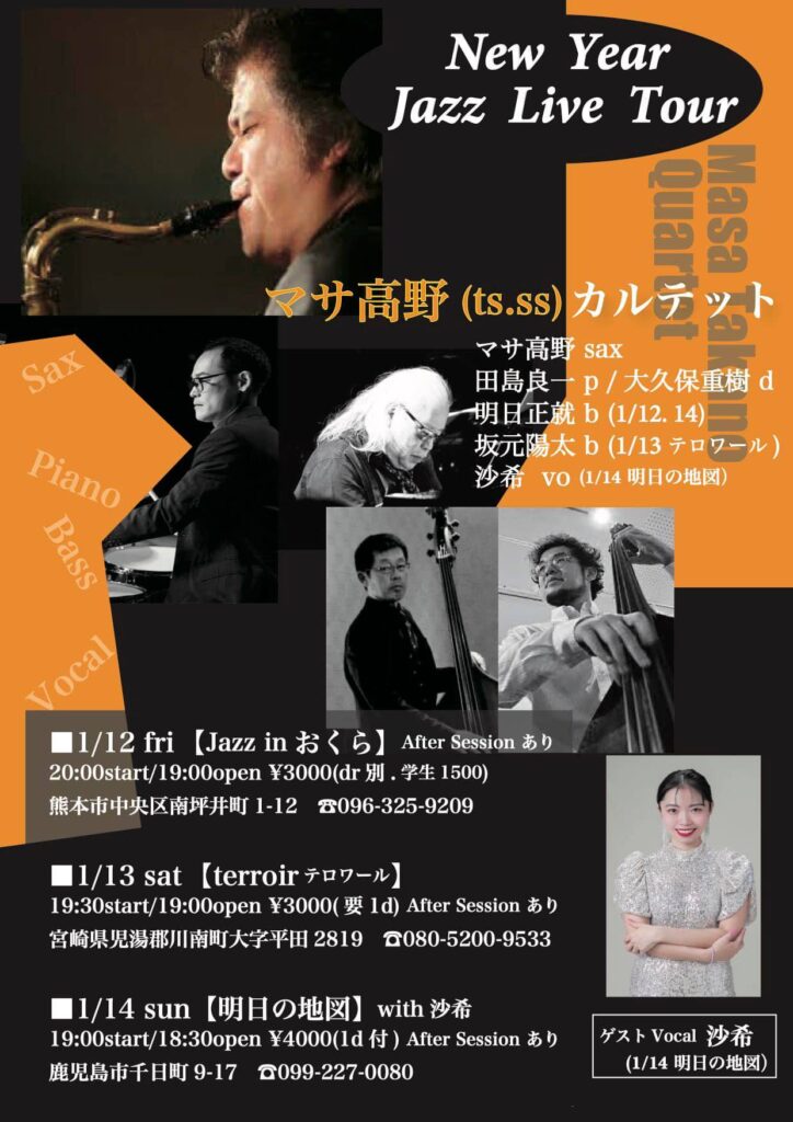 2024年1月13日(土)@16:00 – 18:00 – 阿久根駅 HALL JAZZ LIVE 宮里陽太(Sax) × 松本圭使(Pf) DUO ■出演者 ・宮里陽太 […]