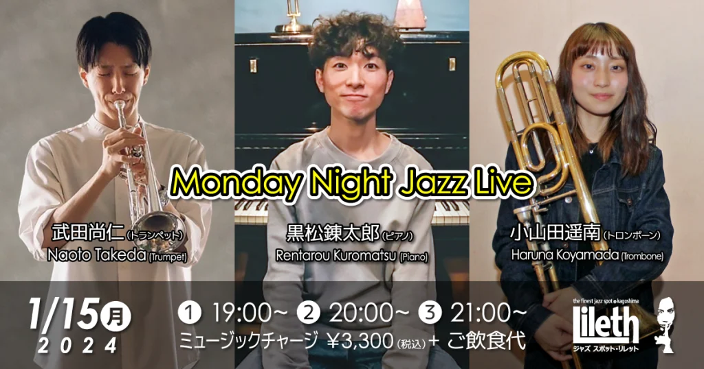 2024年1月15日(月)@19:00 – 21:30 – 黒松錬太郎(Pf)×武田尚人(Tp)×小山田遥南(Tb) Monday Night Jazz Live ■出演 […]
