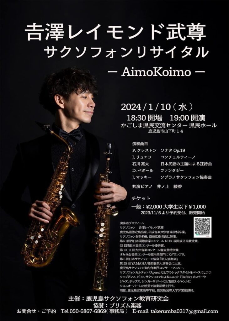 2024年1月10日(水)@19:00 – 21:30 – 吉澤レイモンド武尊(Sax) サクソフォンリサイタル -AimoKoimo- ■出演者 ・吉澤レイモンド武尊( […]