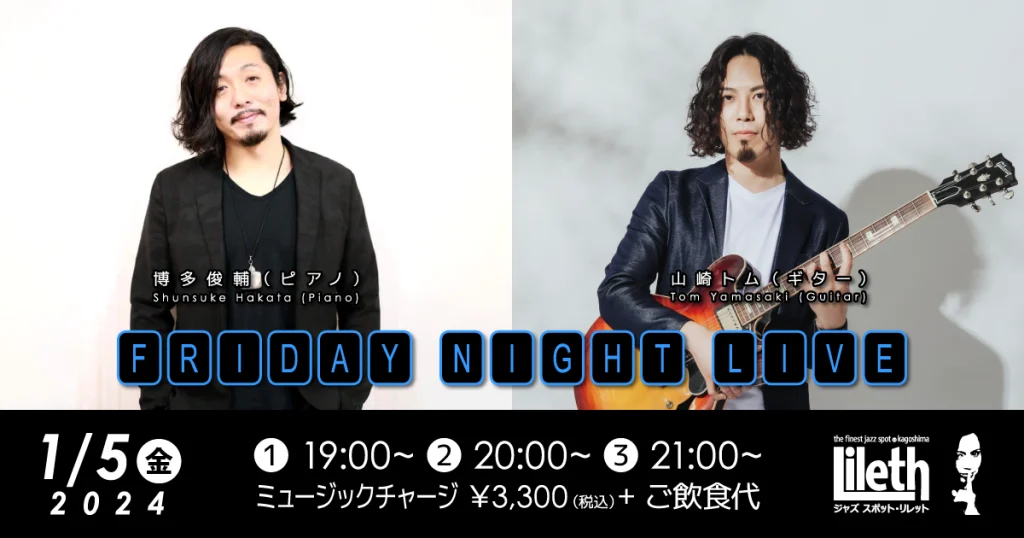 2024年1月5日(金)@19:00 – 21:30 – 博多俊輔(Pf)×山崎トム(Gt) Friday Night Live ■出演者 ・博多俊輔(Pf) ・山崎ト […]