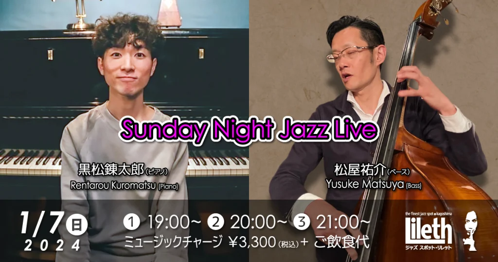 2024年1月7日(日)@19:00 – 21:30 – 黒松錬太郎(Pf)×松屋裕介(Ba) Sunday Night Jazz Live ■出演者 ・黒松錬太郎(P […]