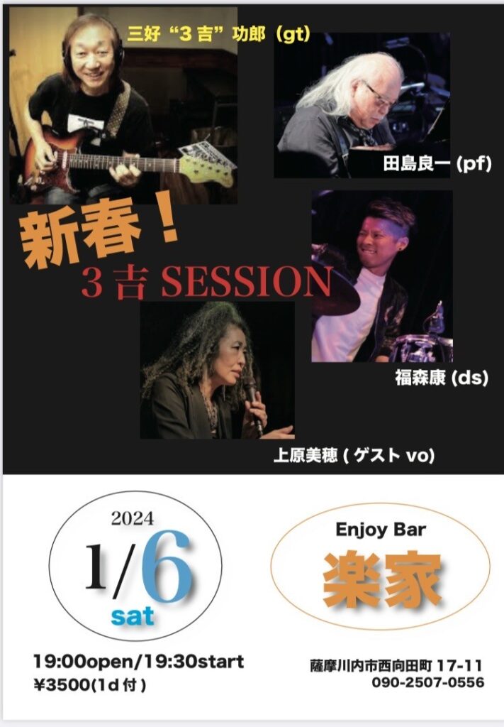 2024年1月6日(土)@19:30 – 21:30 – 新春!3吉SESSION ■出演者 ・三好”3吉”功郎(Gt) ・田島良一(Pf) ・福森康(Ds) ・Gue […]