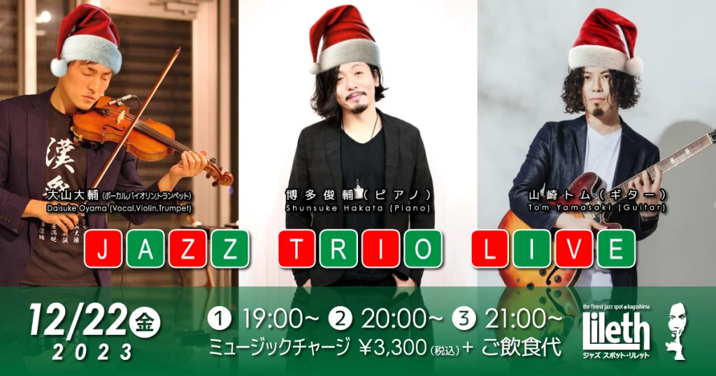 2023年12月22日(金)@19:00 – 21:30 – 博多俊輔(Pf)×山崎トム(Gt)×大山大輔(Vo/Vln/Tp) JAZZ TRIO LIVE ■出演者 ・ […]