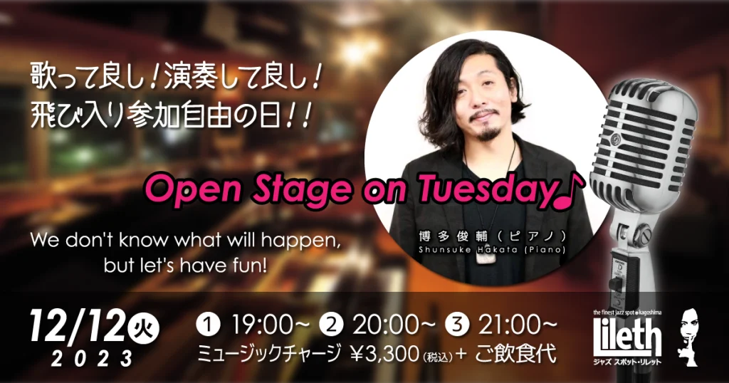 2023年12月12日(火)@19:00 – 21:30 – Open Stage on Tuesday 毎週火曜日に開催されるミュージシャン参加自由のオープンステージ。 […]