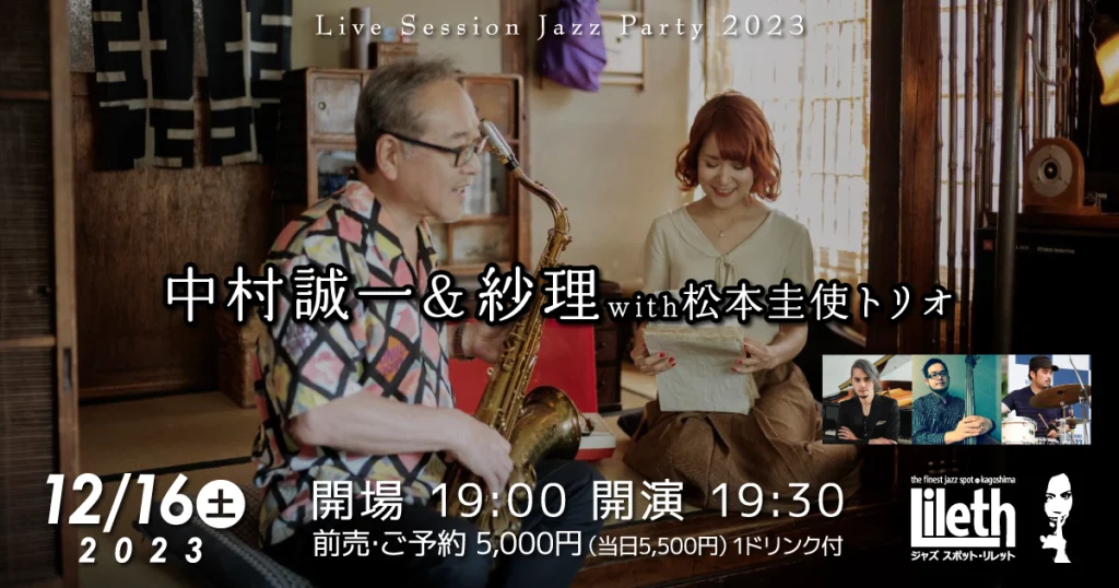 中村誠一(Sax)&紗理(Vo) with 松本圭使トリオ ライブ