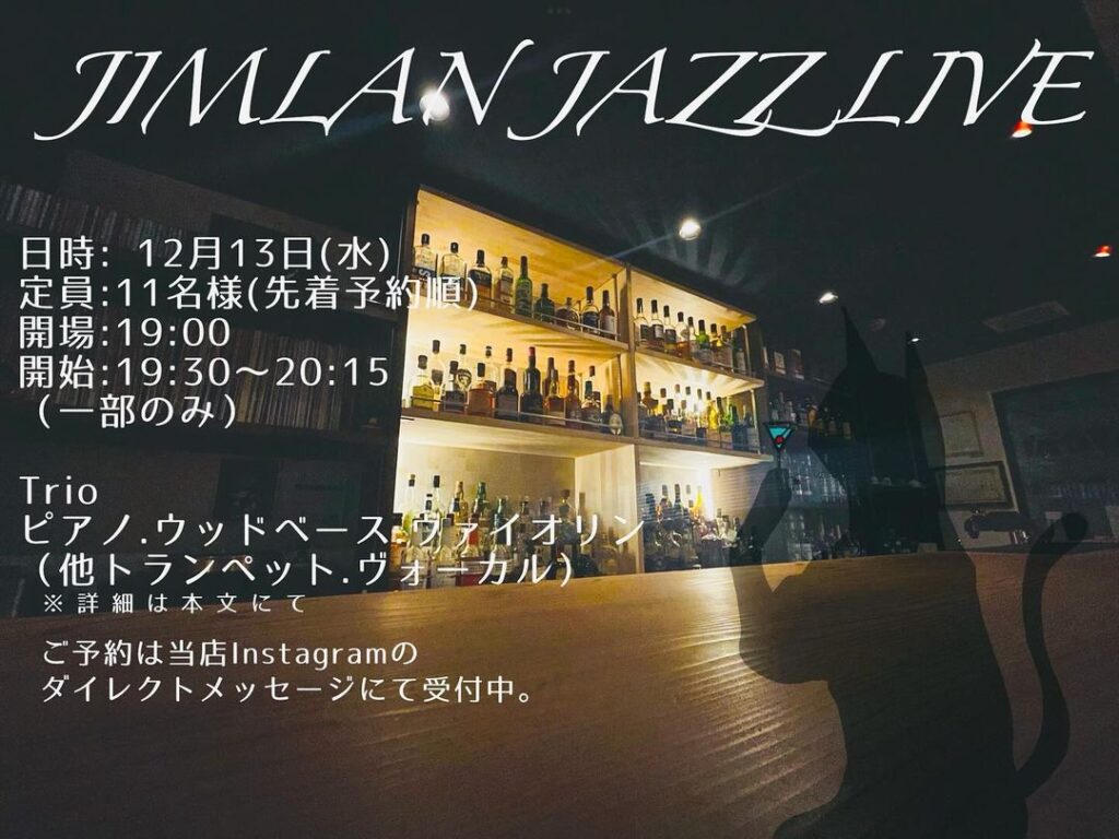 2023年12月13日(水)@19:30 – 20:15 – JIMLAN JAZZ LIVE ■出演者 3G TRIO(ピアノ / ウッドベース / ヴァイオリン、トラン […]