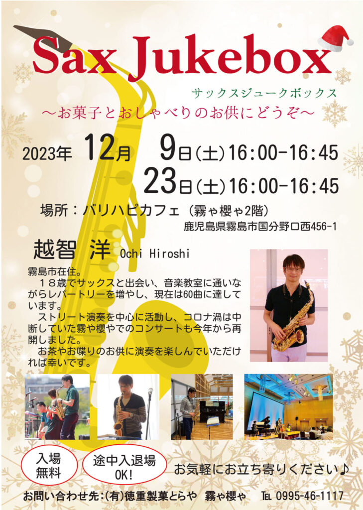 2023年12月9日(土)@16:00 – 16:45 – Sax Jukebox サックスジュークボックス お菓子とおしゃべりのお供にどうぞ ■出演者 ・越智洋(Sax […]