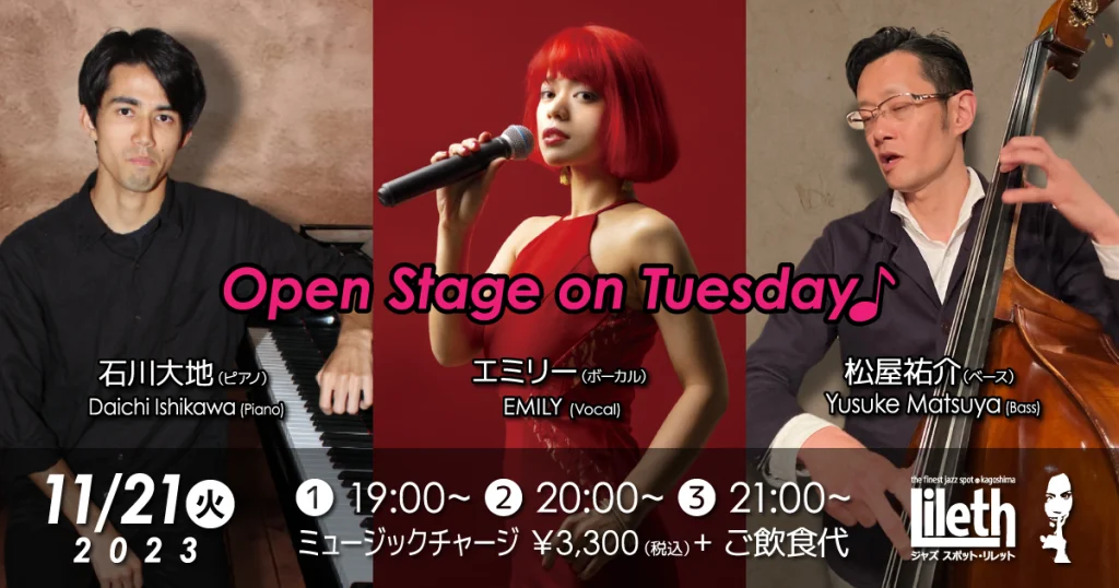 2023年11月21日(火)@19:00 – 21:30 – Open Stage on Tuesday ■出演者 ・石川大地(Pf) ・EMILY(Vo) ・松屋裕介(B […]