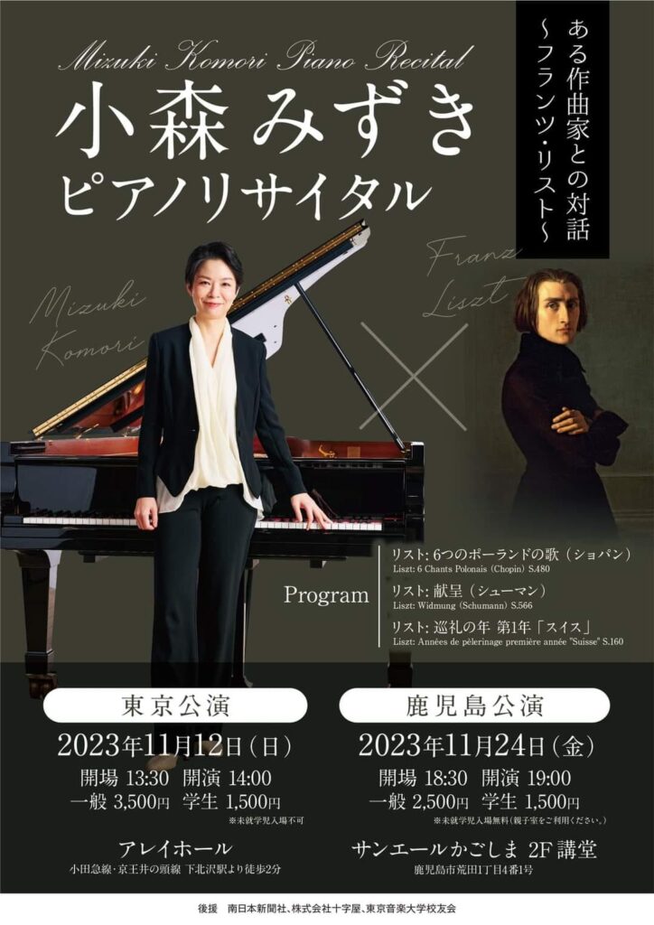 2023年11月24日(金)@19:00 – 21:00 – 小森みずき ピアノリサイタル ~フランツ・リスト~ ある作曲家との対話 ■メッセージ 「演奏」それは作曲家の人 […]