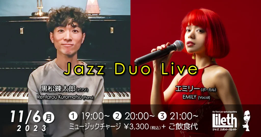 2023年11月6日(月)@19:00 – 21:30 – 黒松錬太郎(Pf) & EMILY(Vo) JAZZ DUO LIVE ■出演者 ・黒松錬太郎(Pf) ・EM […]