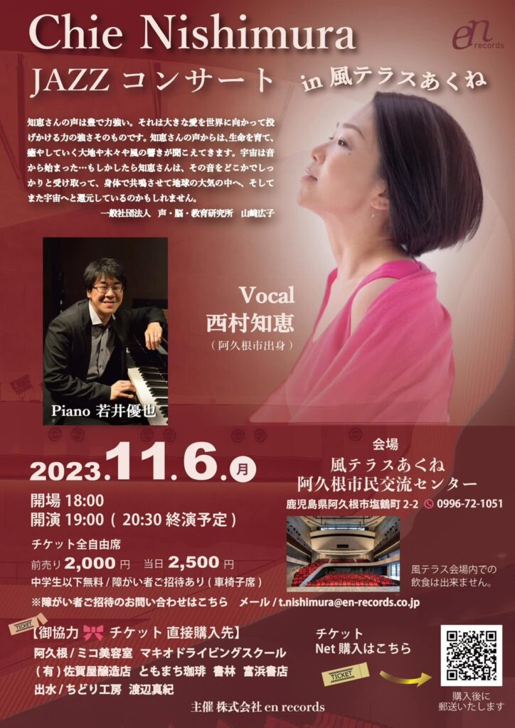 2023年11月6日(月)@18:00 – 20:30 – Chie Nishimura(Vo) JAZZコンサート in 風テラスあくね 知恵さんの声は豊で力強い。それ […]