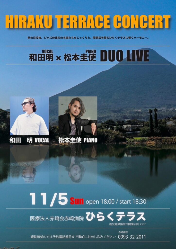 2023年11月5日(日)@18:30 – 21:30 – HIRAKU TERRACE CONCERT 和田明(Vo)×松本圭使(Pf) DUO LIVE 秋の日没後、 […]