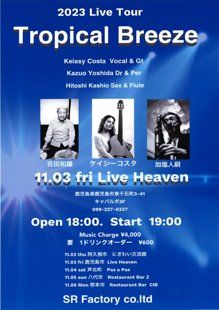 2023年11月2日(木)@18:30 – 21:30 – Tropical Breeze 2023 Live Tour 数年ぶりに帰国する、KeissyCosta。 吉 […]
