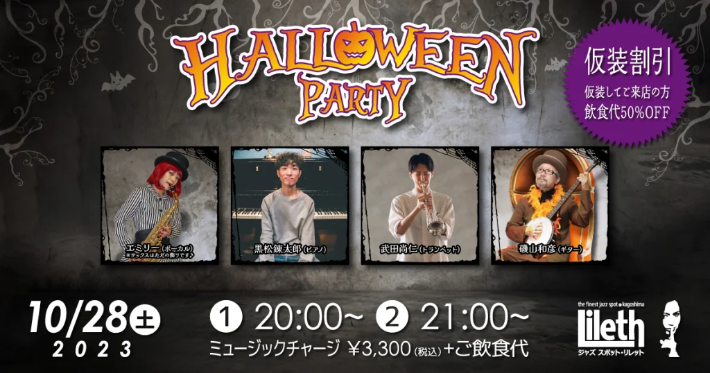 2023年10月31日(火)@19:00 – 23:30 – ❶19:00~ ❷ 20:00~ ❸21:00~ ❹22:00~ ❺23:00~