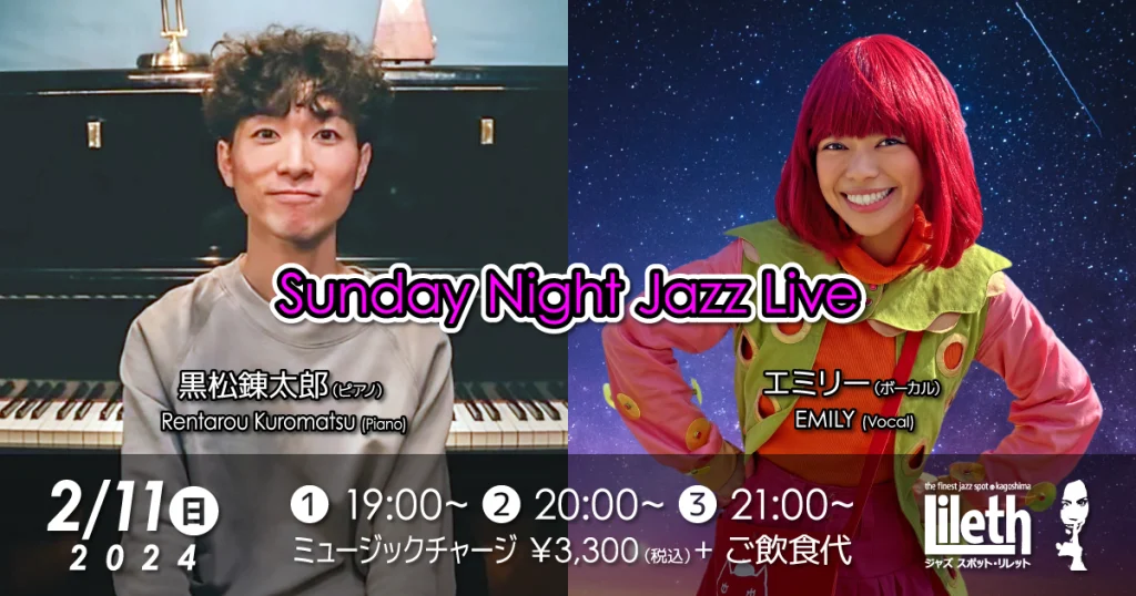 2024年2月11日(日)@19:00 – 23:30 – 山崎トム(Gt)×エミリー(Vo) SATURDAY NIGHT LIVE ■出演者 ・黒松錬太郎(Pf) ・ […]
