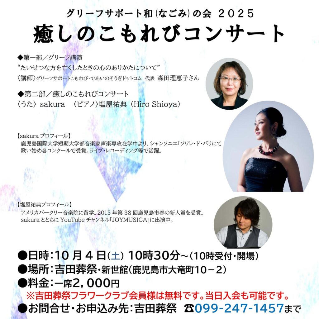 2025年10月4日(土)@10:30 – 12:30 – グリーフサポート和〈なごみ〉の会 2025 癒しのこもれびコンサート ◆第一部/グリーフ講演 “たいせつな方 […]