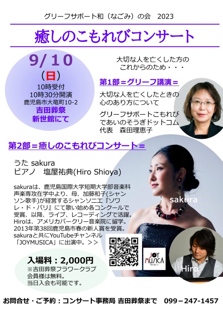 2023年9月10日(日)@10:30 – 12:30 – グリーフサポート和 (なごみ)の会 2023 癒やしのこもれびコンサート ■第1部=グリーフ講演= 大切な人を […]