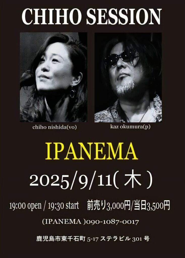2025年9月11日(木)@19:30 – 21:30 – CHIHO SESSION@IPANEMA