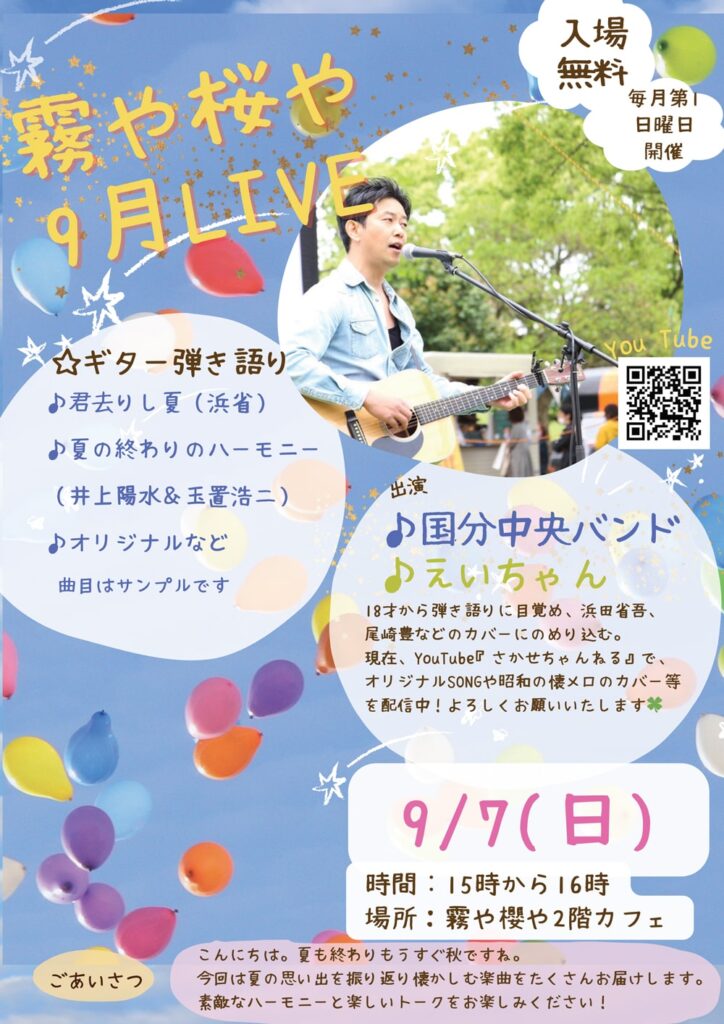 2025年9月7日(日)@15:00 – 16:00 – ■ギター弾き語り 君去りし夏(浜省) 夏の終わりのハーモニー(井上陽水 & 玉置浩二) オリジナルなど ※曲目 […]