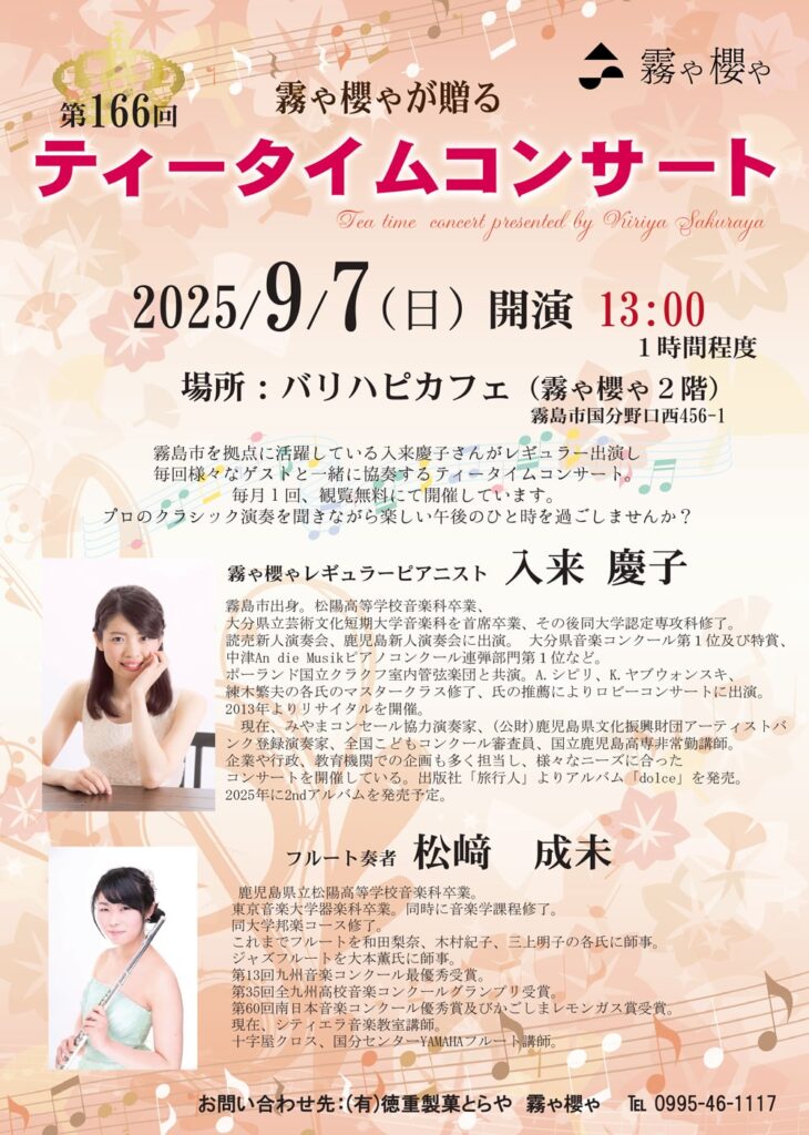 2025年9月7日(日)@13:00 – 14:00 – 霧島市を拠点に活躍している入来慶子さんがレギュラー出演し毎回様々なゲストと一緒に協奏するティータイムコンサート […]