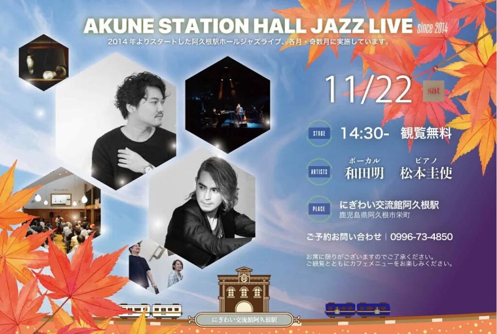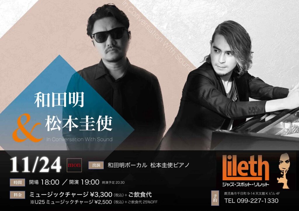 2025年11月22日(土)@14:30 – 16:30 – 阿久根駅 HALL JAZZ LIVE 和田明(Vo) × 松本圭使(Pf) DUO ※お席に限りがあります。 […]