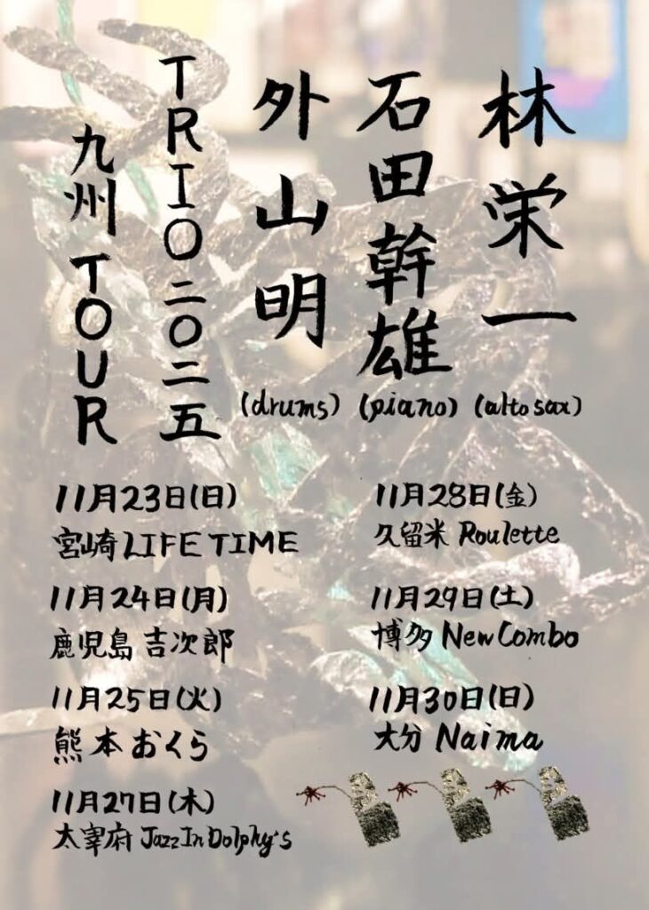 2025年11月24日(月)@19:00 – 21:00 – 林栄一(Sax)×石田幹雄(Pf)×外山明(Ds) TRIO 2025 九州ツアー