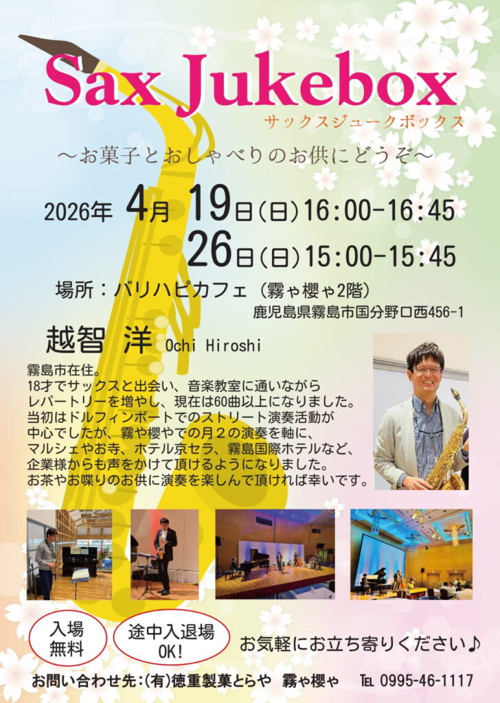 2026年4月19日(日)@16:00 – 16:45 – Sax Jukebox サックスジュークボックス お菓子とおしゃべりのお供にどうぞ 途中入退場OK!お気軽にお […]