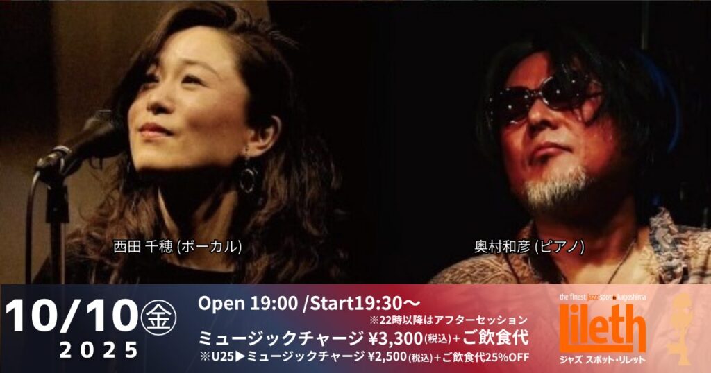 2025年10月10日(金)@19:00 – 23:30 – 熱い南国グルーヴと情熱的なフレーズは正に南九州のジャズ!! 繊細かつ情熱的なボーカルとピアノの最強デュオが夏を […]
