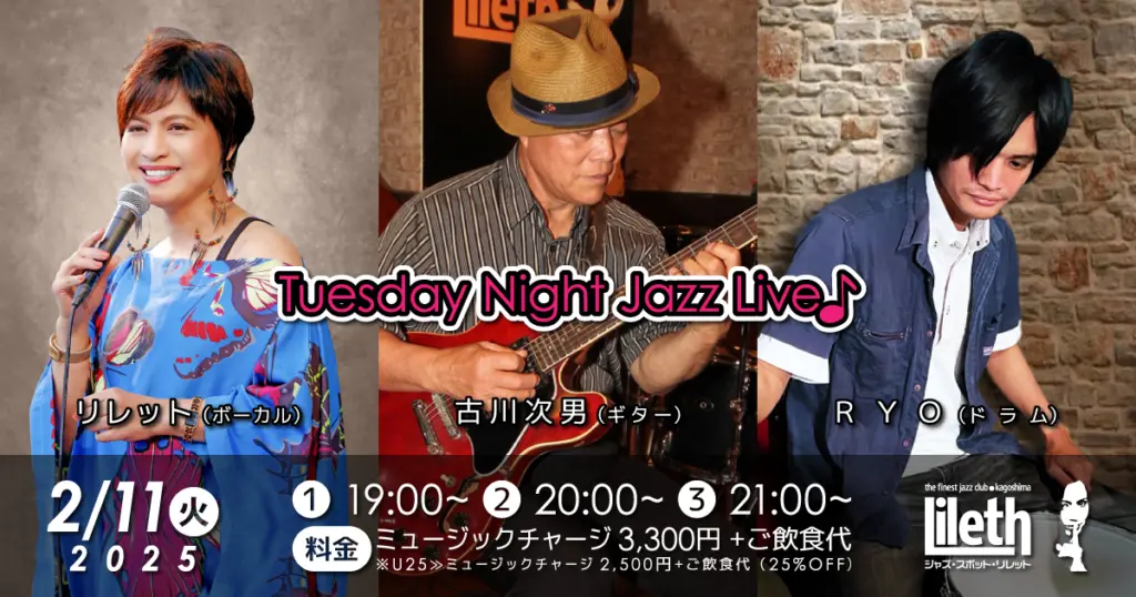 2025年2月12日(水)@19:00 – 21:30 – 青野進也×リレット×古川次男 Wednesday Night Live