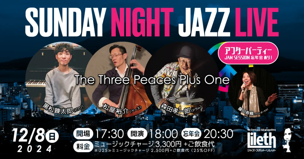 2024年12月8日(日)@18:00 – 23:30 – アフターパーティー JAM SESSION 忘年会(オードブル&飲み放題) 【一般】5,500円 【ライブ観覧 […]
