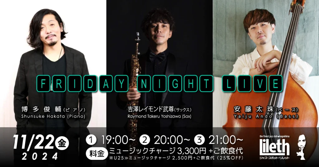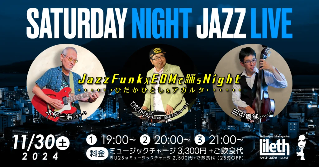 ひだかひとし(Vo)×木下一浩(Gt)×田中貴純(Ba) SATURDAY NIGHT LIVE ~ Jazz Funk × EDM で踊らNight