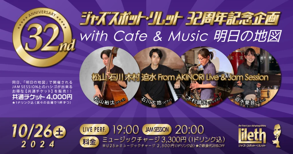 2024年10月26日(土)@19:00 – 21:30 – ジャズスポット・リレット 32周年記念月間イベント ジャズスポット・リレットは、おかげさまで32周年を迎えます […]
