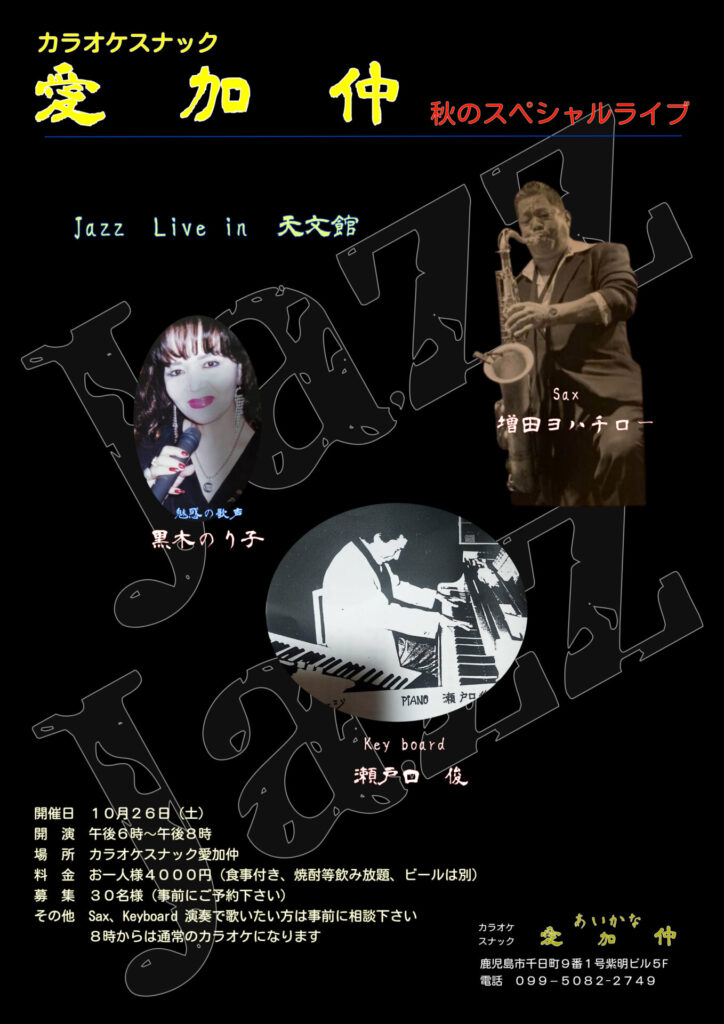2024年10月26日(土)@18:00 – 20:00 – Jazz ライブを開催します その他 Sax Keyboard 演奏で歌いたい方は事前に相談下さい 8時からは […]