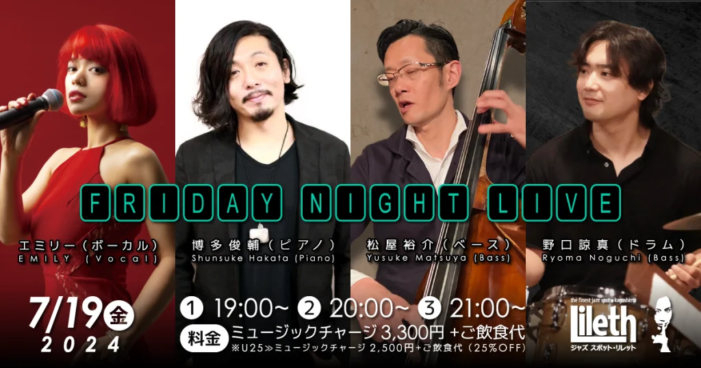 博多俊輔(Pf)×松屋裕介(Ba)×野口諒真(Ds)×エミリー(Vo) on Friday Night Live
