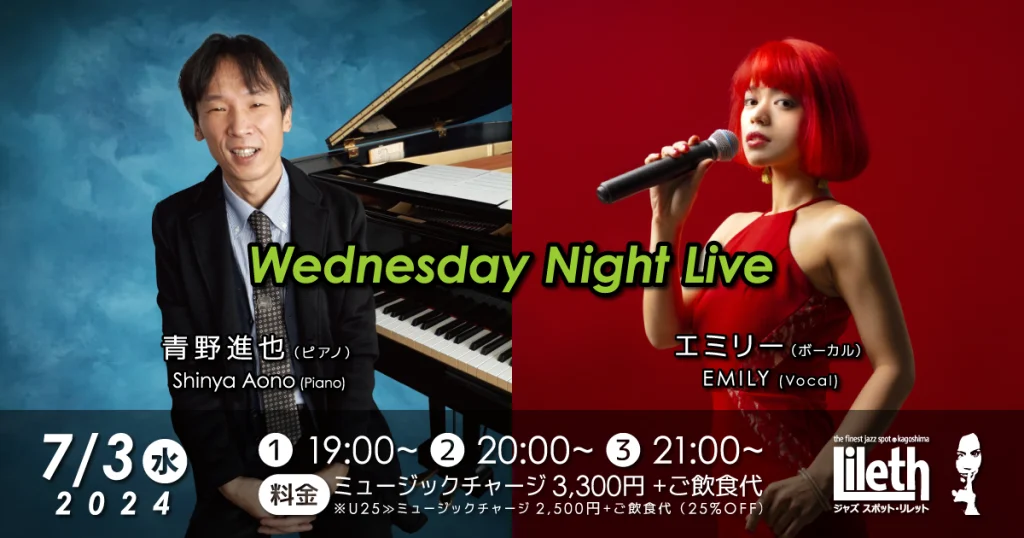 2024年7月3日(水)@19:00 – 21:30 – 青野進也(Pf)×エミリー(Vo) Wednesday Night Live ■出演者 ・青野進也(Pf) ・ […]