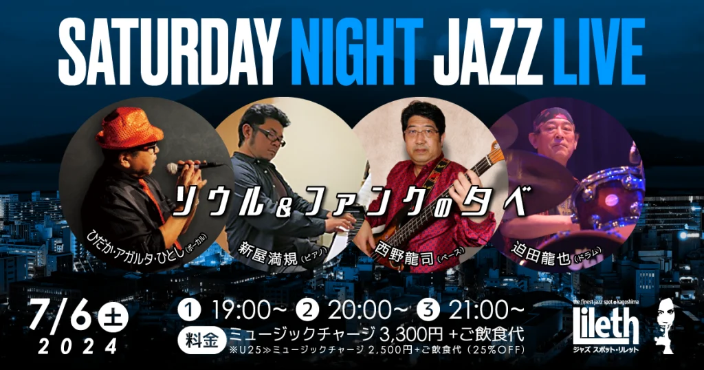 2024年7月6日(土)@19:00 – 21:30 – ひだかひとし(Vo)×新屋満規(Pf)×西野龍司(Ba)×迫田龍也(Ds) on SATURDAY NIGHT […]
