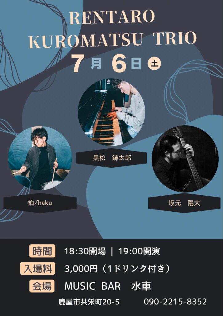 2024年7月6日(土)@19:00 – 21:00 – RENTARO KUROMATSU TRIO ■出演者 ・黒松錬太郎(Pf) ・坂元陽太(Ba) ・拍/hak […]